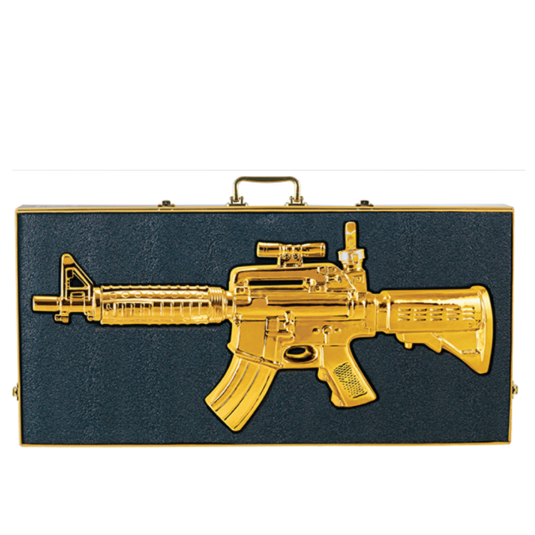 This is a golden rifle filled with tequila!