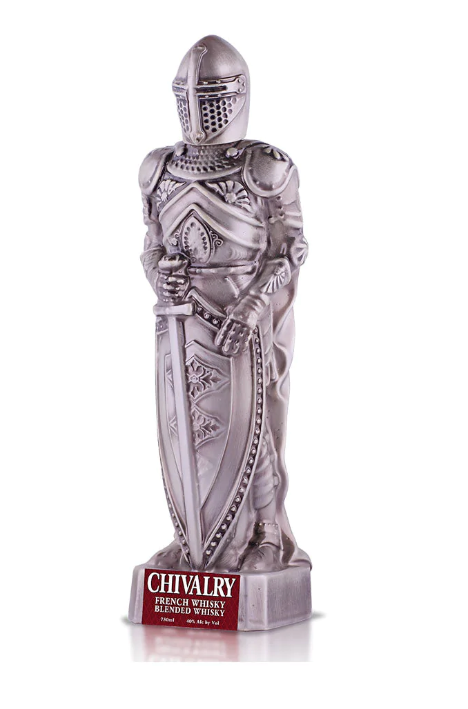 Chivalry features a custom made bottle resembling a knight from the 8th century. The mastery of each hand made bottle extends to the liquid inside with an expertly crafted blend of French whisky. You’ll experience notes of gentle malt, honey, vanilla, and oak. A perfect bottle for a unique gift or to be the star of the show with a bottle that will shock the room.