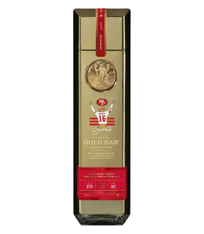 Experience the legendary taste of Gold Bar Blend 273 Joe Montana Collection Whiskey. Crafted with a unique blend of ingredients, this whiskey offers a smooth, rich flavor that will satisfy any palate. Elevate your drinking experience with this premium, expertly crafted blend.