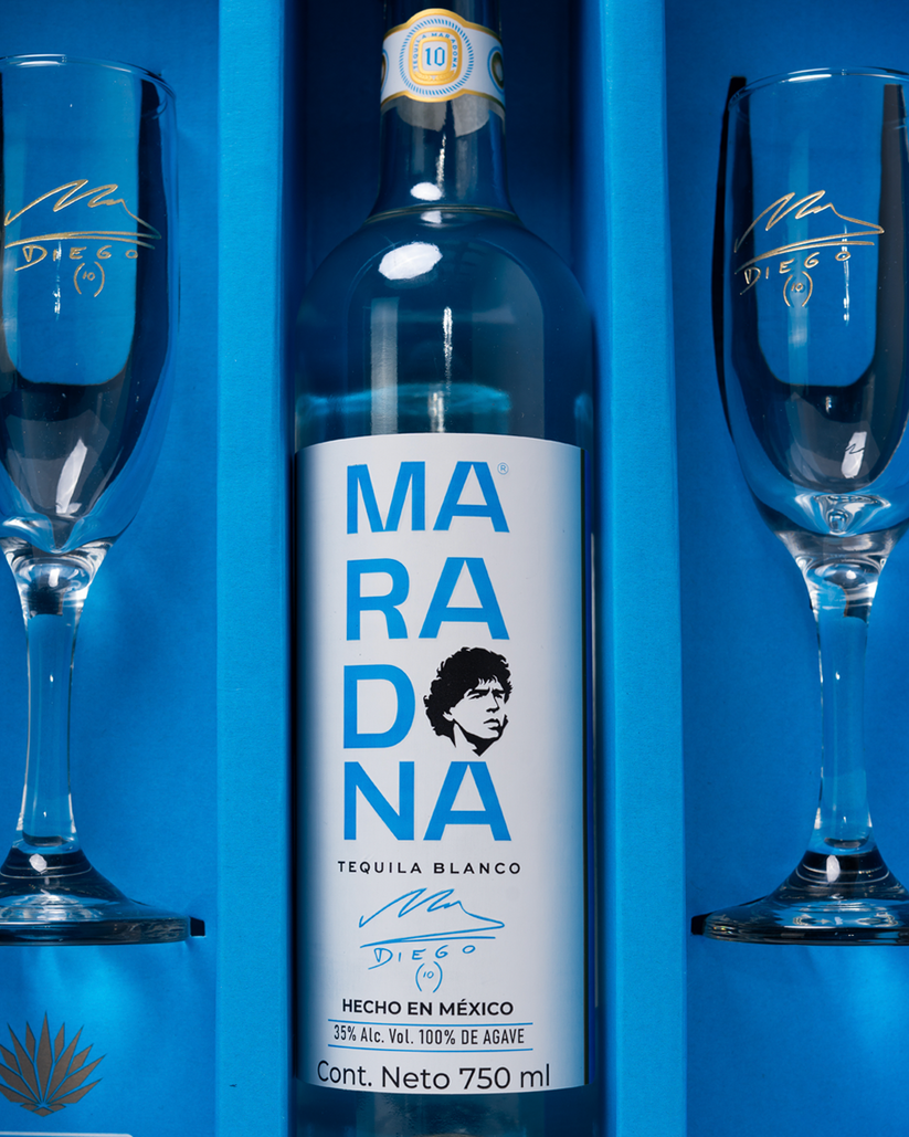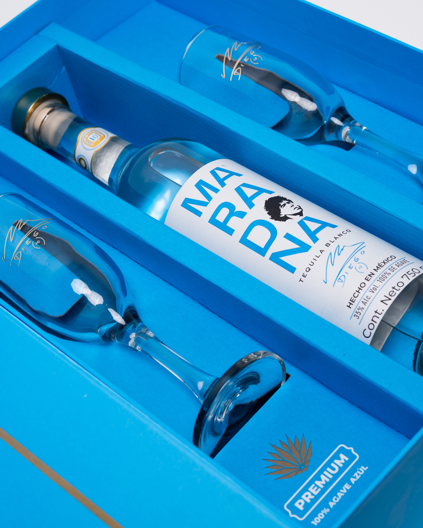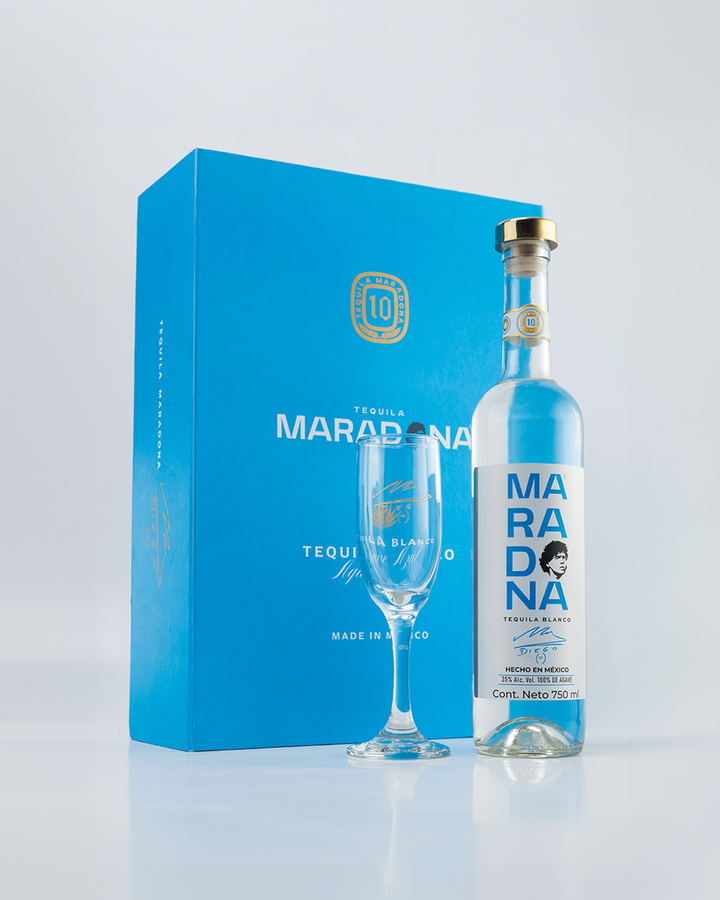 Discover the exquisite taste of Maradona Blanco Tequila with this gift set, perfect for any tequila connoisseur. Crafted with the finest 100% blue agave, this smooth and refreshing tequila comes with a unique glass for the ultimate sipping experience. The perfect gift for any occasion.