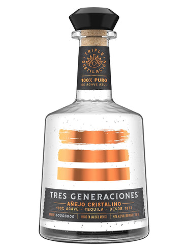 Tres Generaciones continues to celebrate those who strive to create their own legacy and the success that comes from never giving up when faced with a challenge. This new, exceptional Añejo Cristalino offering is no different and exemplifies the brand's own generational story of pioneering, perseverance, and pride. The liquid starts as 100% blue weber agave which is triple-distilled for extraordinary smoothness. It is then rested in American white oak barrels for at least 12 months to enhance its character – adding an array of subtle flavors and a smoky finish. Finally, this aged liquid is rock filtered to gently extract the color, rounding out the flavor profile.