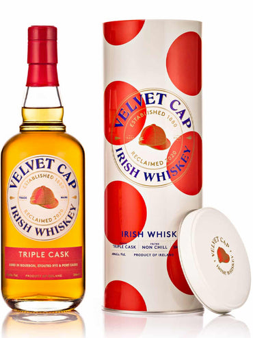 Velvet Cap Irish Whiskey is a small batch blend of malt and grain whiskies sourced from some of Ireland’s finest distilleries. After blending, we rest the whiskey in a selection of bourbon, port and stouted rye casks to let the flavours marry.